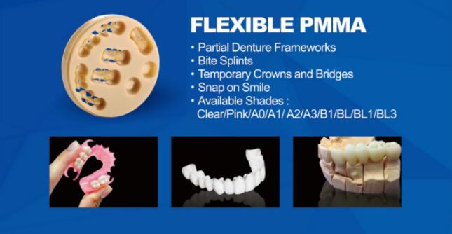 Honchon Smile Flexible Acetal Disc is a millable resin that provides dental technicians and dentists with a metal-free alternative for removable applications. This Resin is in high tensile and flexural strength, fatigue resistance, low friction, low moisture absorption, and excellent dimensional stability.